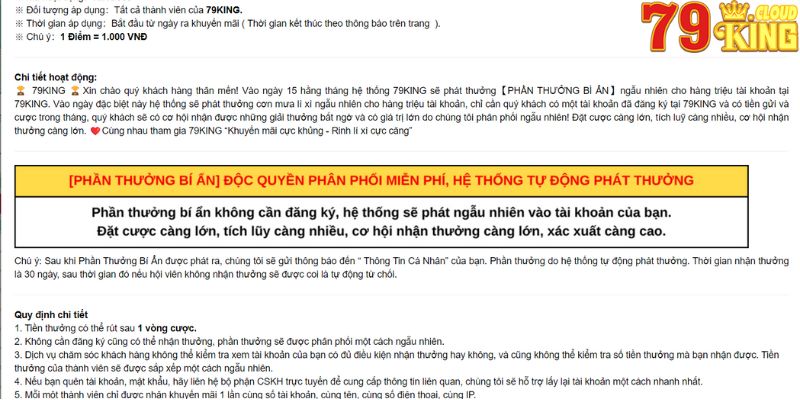 • Đối tượng tham gia khuyến mãi: Tất cả thành viên của 79KING