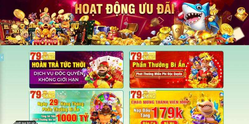 Ngay từ khi xuất hiện, nhà cái 79King đã để lại ấn tượng mạnh mẽ bằng việc liên tục giới thiệu những ưu đãi hấp dẫn. Trong số đó, điểm đáng chú ý nhất chính là chương trình khuyến mãi chào mừng sau khi thành công trong việc đăng ký tài khoản.