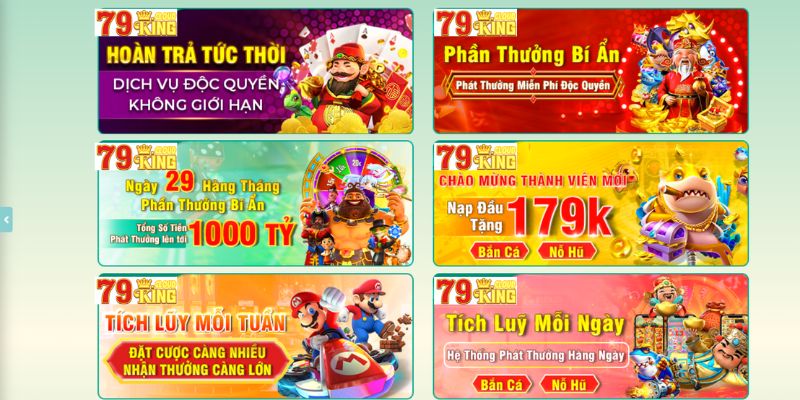 Mỗi chương trình khuyến mãi 79King đều có thời gian áp dụng cụ thể, để không bỏ lỡ bất kỳ cơ hội nhận thưởng nào, hãy chắc chắn rằng bạn đã nắm rõ thời gian diễn ra.